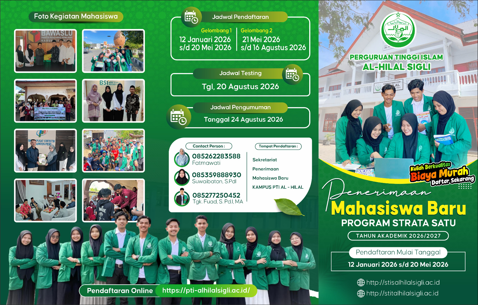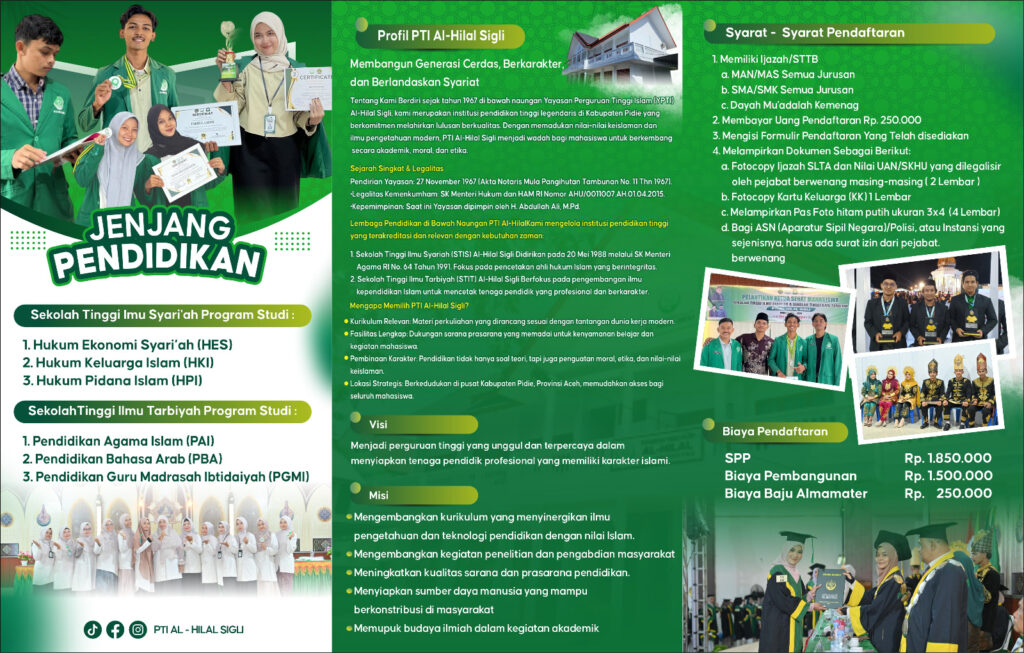 Beranda / Mahasiswa Baru / Penerimaan Mahasiswa Baru TA 2026/2027Mahasiswa BaruPenerimaan Mahasiswa Baru TA 2026/202722/01/2026 PENDAFTARAN ONLINE Share this ArticlePrevious ArticleSTIS PTI Al Hilal Sigli Gelar Khanduri Apam, Lestarikan Tradisi Kuliner Khas AcehNext ArticleWujudkan Masa Depan: STIS Al-Hilal Sigli Gelar Sosialisasi PMB di 10 Sekolah Unggulanadmin Related Posts STIS Al-Hilal Gencarkan Sosialisasi PMB Tahap 2 di Pidie: Solusi ... 03/02/2026 Wujudkan Masa Depan: STIS Al-Hilal Sigli Gelar Sosialisasi PMB di ... 27/01/2026 Penerimaan Mahasiswa Baru Tahun Akademik 2023/2024 06/02/2023
