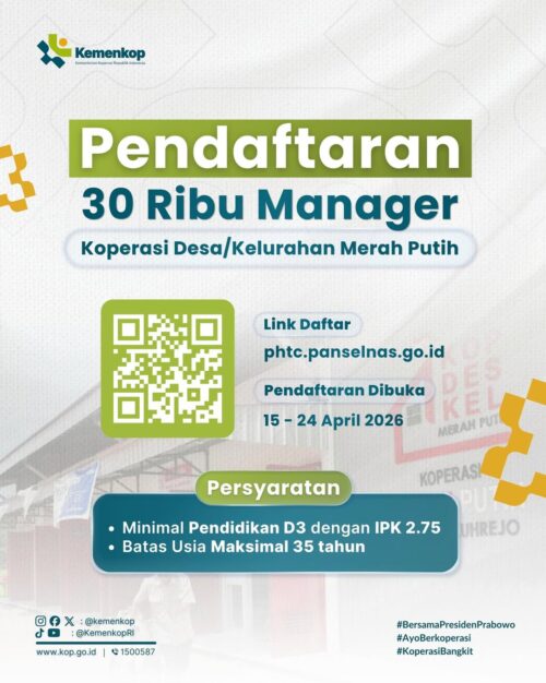 Program ini merupakan peluang strategis bagi para lulusan perguruan tinggi untuk berkontribusi langsung memperkuat ekonomi kerakyatan. Tersedia puluhan ribu formasi, mulai dari Manajer Koperasi hingga Pengelola Kampung Nelayan.